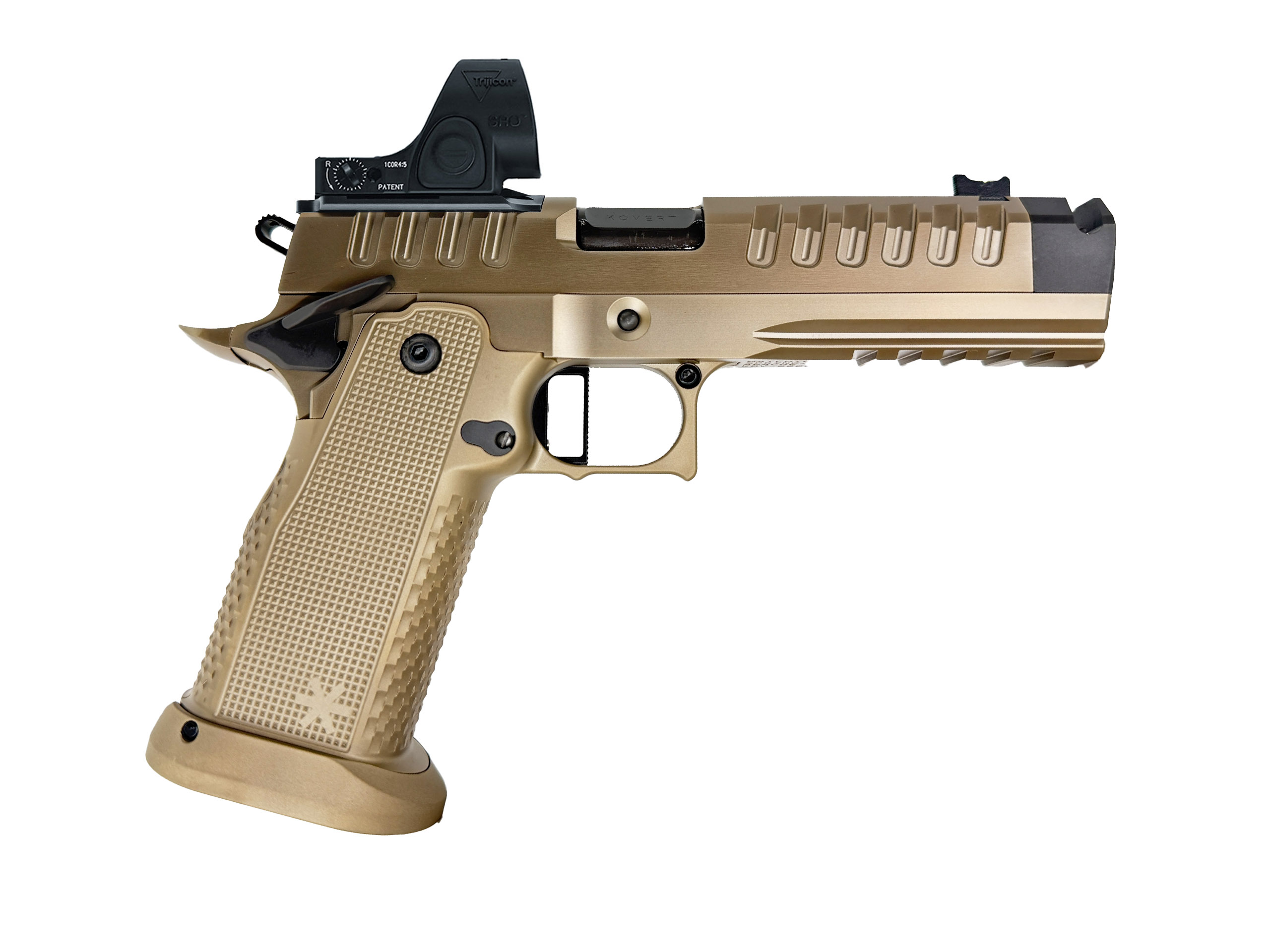 - 4.25" tri-top cut slide with .75" Compensator, front and rear serrations, RDS Optic cut and .300/.060/60 deg f...