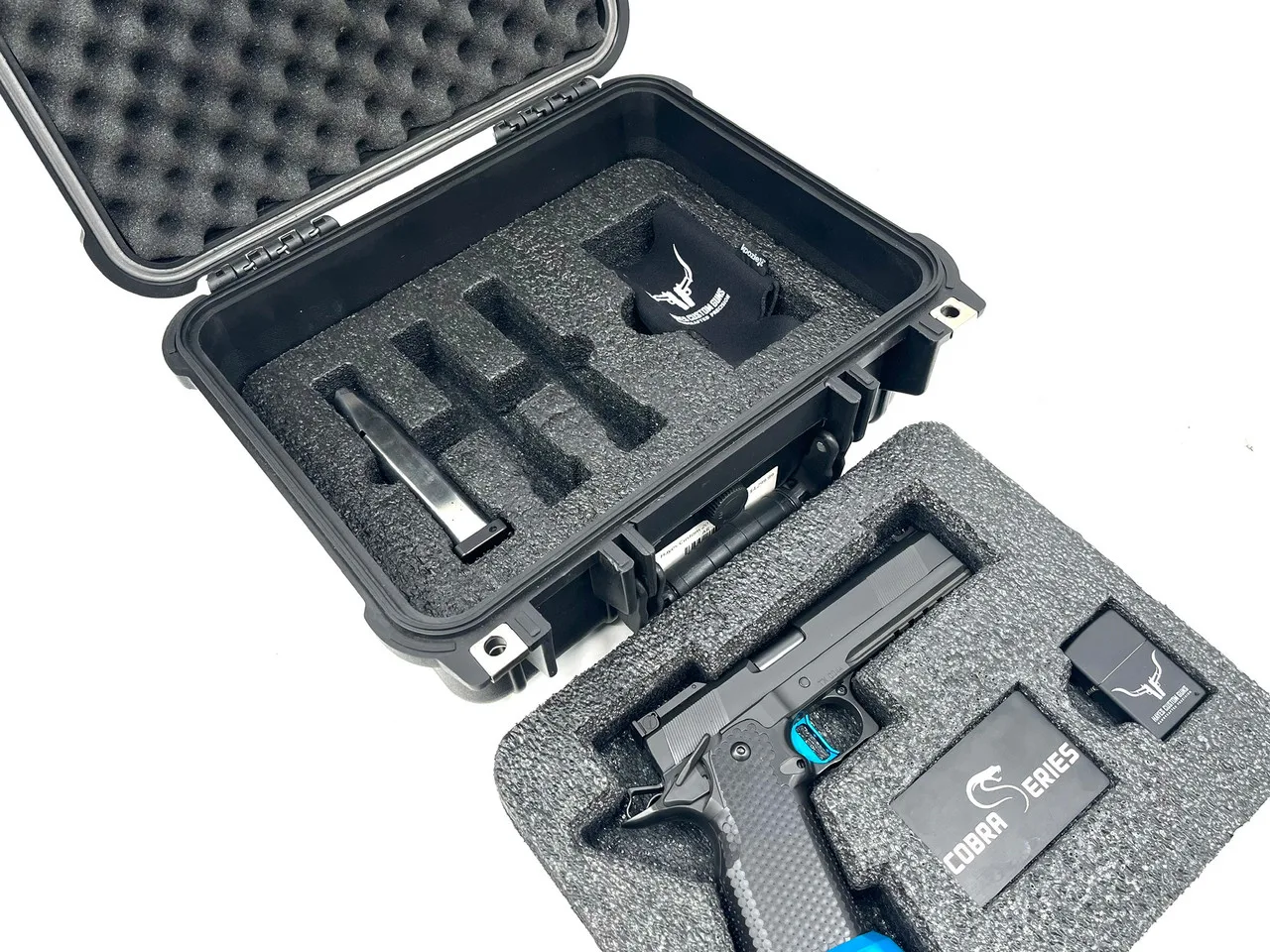 - Custom hardcase (with 5 pistol mag slots, 2 cut outs for optics, 1 cut out for iron sight plate)
