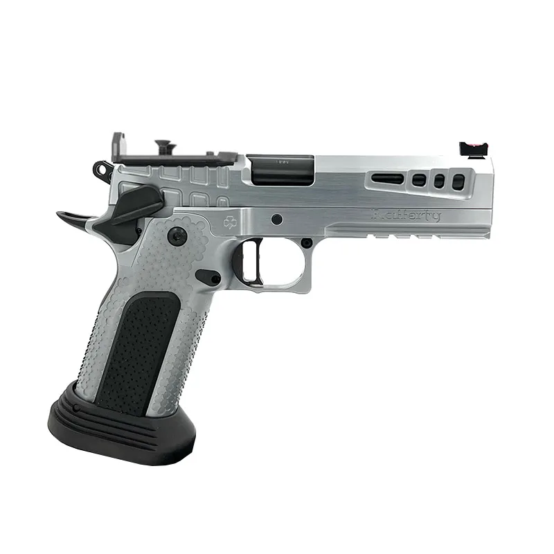 The Lucky Charm is a 4.6” bull barrel 9mm, cut for the slide mounted Atlas optic plate system. Built on an Atlas aggressive grip with interchangeable grip panels and comes standard with Atlas magwell.  The entire pistol is hand beveled with a seamless ejector fit and attention to detail given to every part of the pistol including a deep, flush cut crown and mirror polished barrel.  2lb trigger job with very positive reset comes in every pistol.  Standard parts also include a toolless guide rod. Pistol comes standard with an SRO optic plate with backup sight. Optics NOT included.